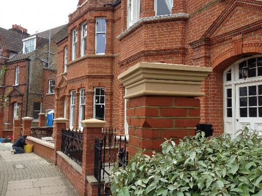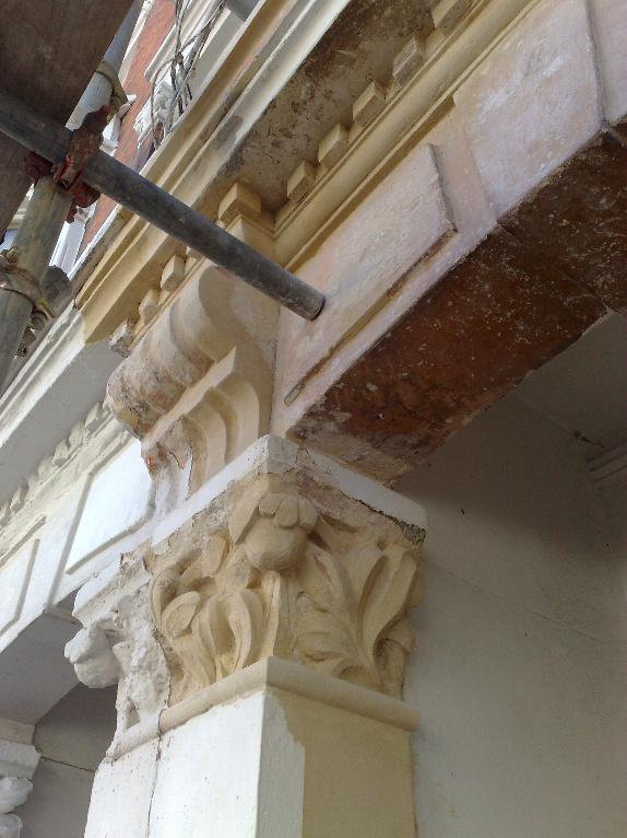 Phase 1, complete remodeling of front elevation LHS in reconstituted stone / cast in-stitu.